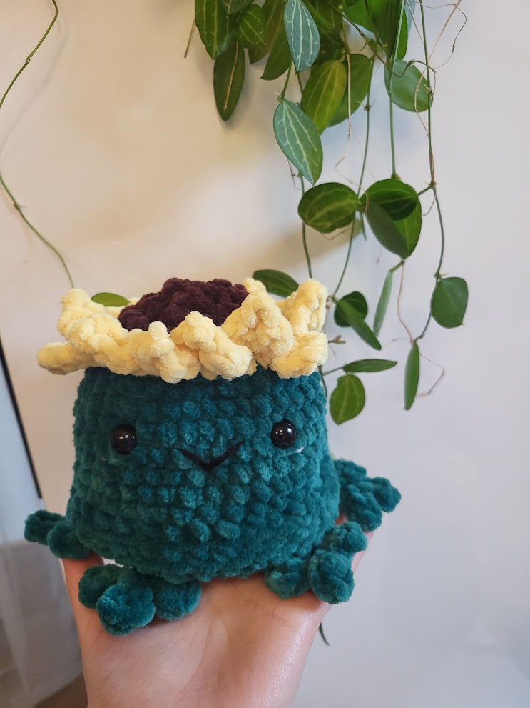 Meet the very first 2in1 plushie in my shop! This frog changes from simple one to sunflower frog.